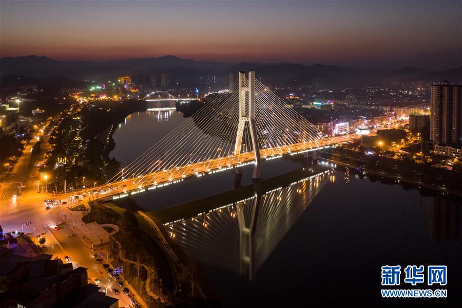这是广西百色市东合大桥及周边夜景(11月26日无人机拍摄)。