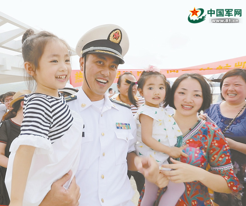 2018年5月16日,是海口舰第一次靠泊港口“回娘家”的日子。黄变早早地等候在码头,一点一点看着悬挂满旗的战舰回到祖国的怀抱,进入她的视线。那一刻,她满眼泪花,“在‘流动国土’上保卫祖国的男人,走到哪里都是最美的风景”。