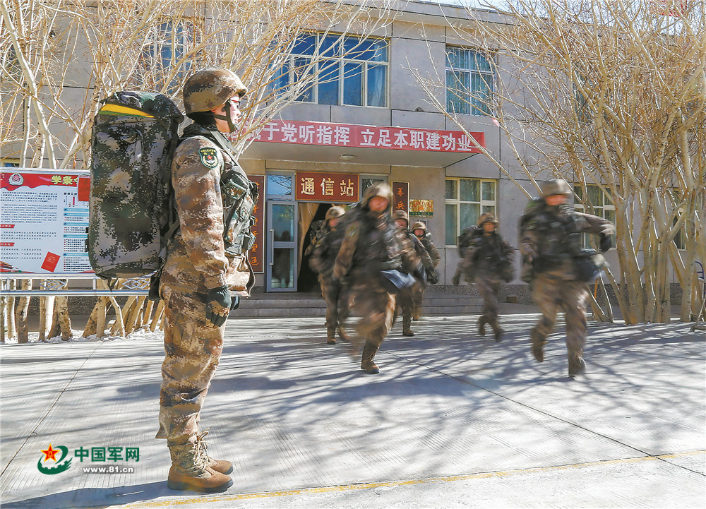 “嘟嘟嘟……”3月13日清晨,随着一阵急促的哨声响起,西藏阿里军分区通信站话务女兵班的女兵们携带装备物资,紧急列队集合。班长王晓琴快速检查携行装备物资后,下达向预定地域徒步行军的口令。晨曦中,女兵们开始了一天紧张忙碌的训练工作……