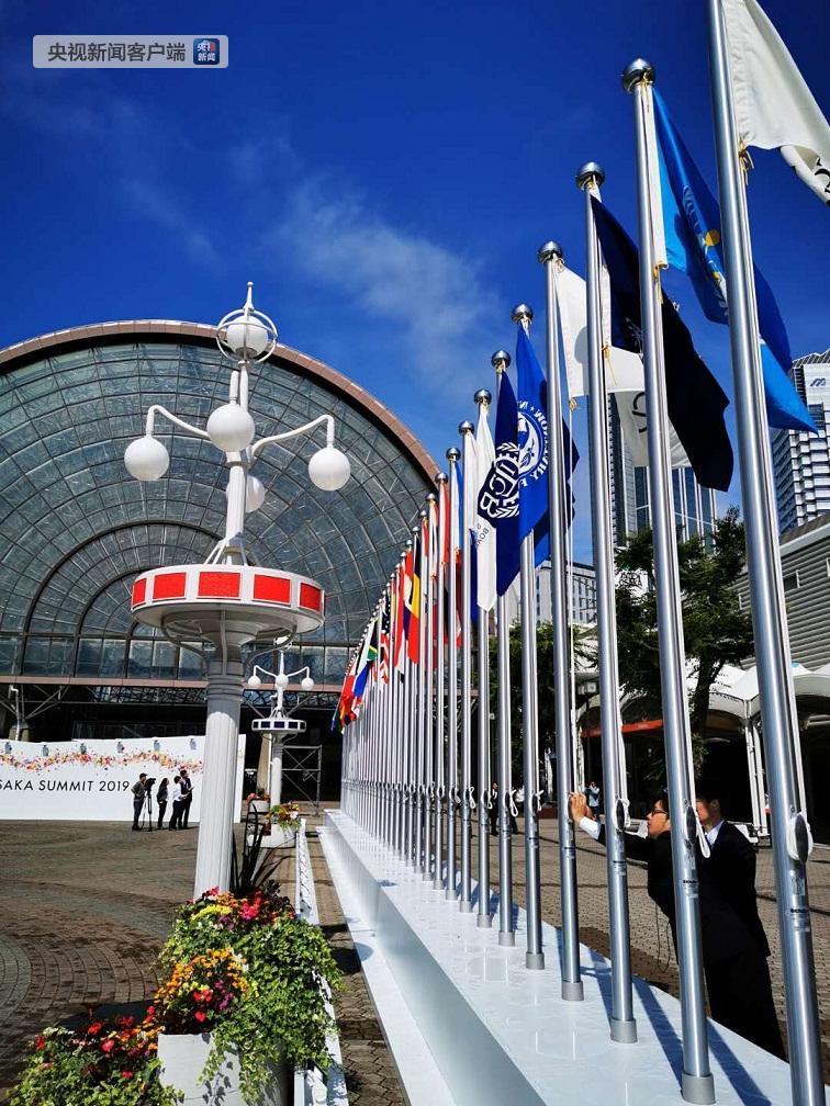 △大阪国际展览中心的各方旗帜。(央视记者荆伟拍摄)