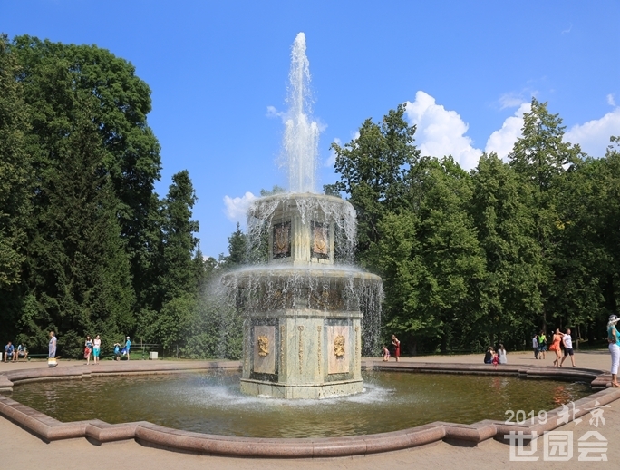 每个喷泉几乎都有雕塑相映成趣。雕塑千姿百态,喷泉水珠飞溅,引人入胜,让人赏心悦目。