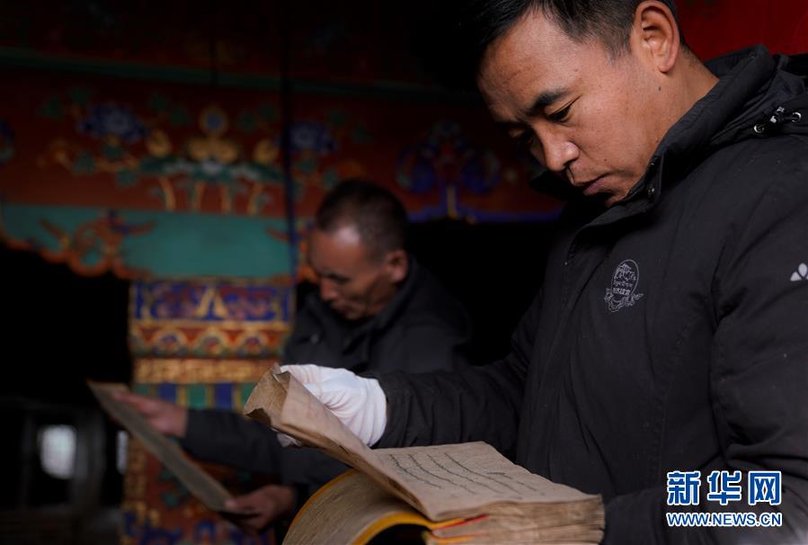 布达拉宫管理处工作人员开展前期古籍文献普查登记工作(2018年11月16日摄)。 新华社记者 普布扎西摄