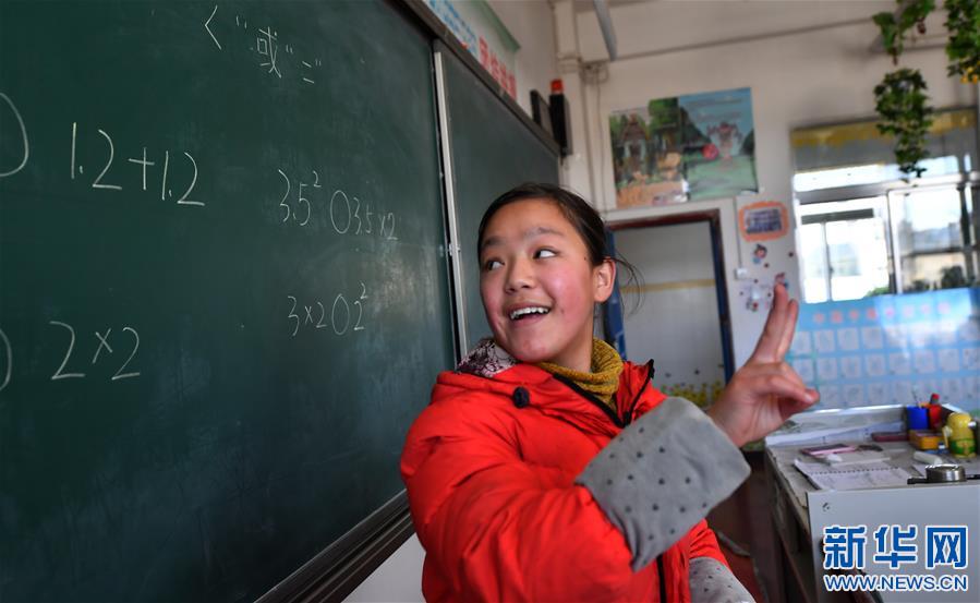 3月14日,藏族学生达娃卓玛用手语答题。新华社记者 觉果 摄