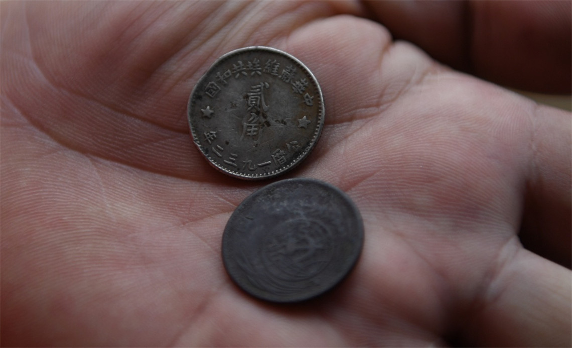 6月12日,罗小龙在展示中央苏区使用的货币。新华社记者 周密 摄