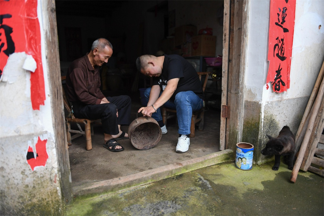 6月12日,罗小龙在一位老乡家收集文物。新华社记者 周密 摄