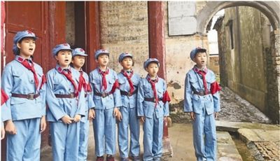 阴雨绵绵,村路崎岖,记者一行人踩着碎石子追随红军当年的足迹,忽闻一段歌声从街巷传出,稚嫩清脆、宛转悠扬,便立刻循声而去。