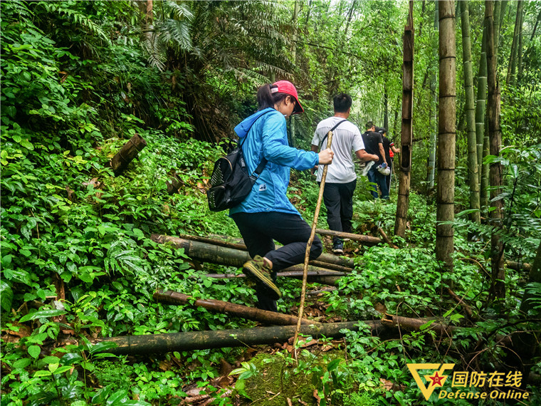 几场大雨后,脚下是湿滑的苔藓,手畔是歪倒的毛竹,乱枝不时“迎面而来”,小道也若隐若现……尽管手里撑着木棍,脚上穿着早早备好的雨鞋,但崎岖的山路以及被汗水和雨水浸透的衣物带来的浓重湿热感,都让我不断产生放弃去雷公岩的念头。似乎看穿了我内心的“小九九”,身后的兴安县融媒体中心主任赵时斌鼓励我,“加油,已经走了一大半了,很快就到雷公岩了。”