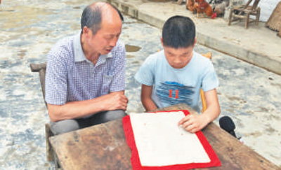 李道海(左)和儿子在看红军宣传单。杨洪霞摄(人民视觉)