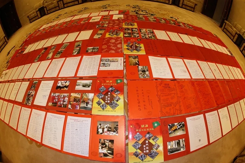 浏览着签名册,我在想象着澳门市民制作它时的场景,也许社区的人们会排起长队,翘首期盼着在那一页红色的纸上留下自己的姓名;也许学校的老师会几人凑到一堆,认真研究页面版式;也许还在上学的学生会像制作手账般精心设计,以表达他们的谢意……但,无论是怎样的情形,当笔尖的墨水变成纸上的汉字,这一份连起来长达近60米的签名长卷都让我们读懂了包含其中的深情厚谊。