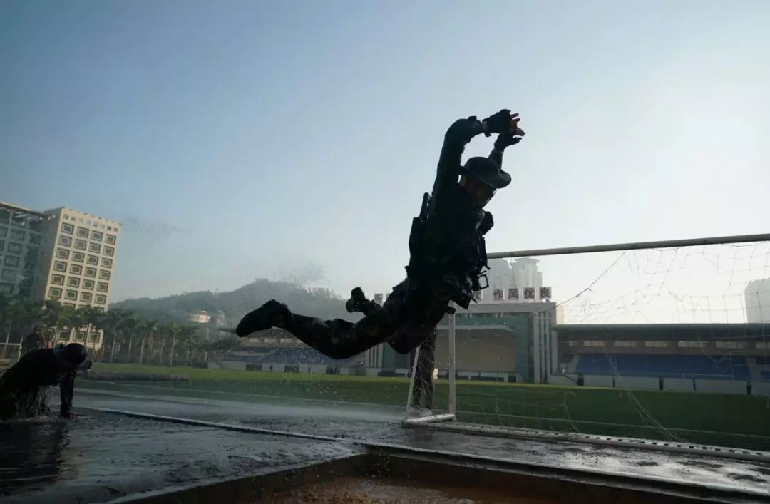 △驻澳门部队特战队员正在进行意志障碍训练。宋明亮 摄