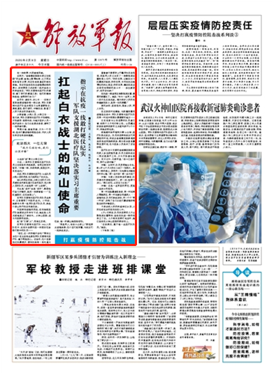 在抗疫一线读到这条微信朋友圈,姜雪的眼圈红了。她说:“作为一名军人,我一定不负这身戎装。能为保护人民的生命健康而战斗,是我一生的荣耀!”