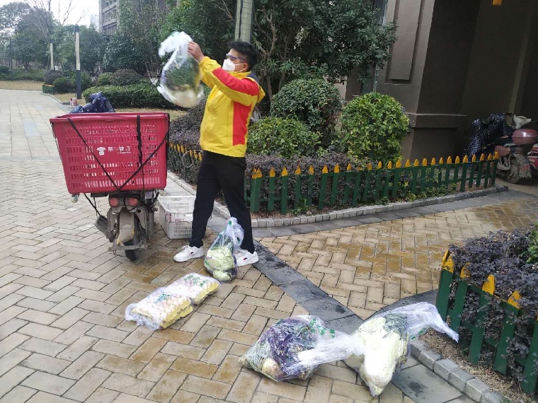 “第一次配送的时候速度还比较慢,四五十户物资就送了一整天,但现在熟练了,速度就会快很多,最多时候一天就送了80多户蔬菜,中间再去拿四五个快递。”石浩说,在工作时,自己的手机微信几乎一直在响。