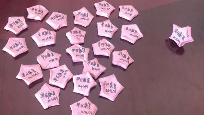 住进武汉江夏区方舱医院的轻症患者不得不与家人隔离,不能出门活动,在初春的户外仰望星空,暂时只能是一个愿望。2月20日的夜晚,夜班护士却把“星星”带进了“方舱”!南京市中西医结合医院的护士王慧敏上班时,向每一位患者赠送了一个自己亲手叠的许愿星,每一个“星星”都写上了祝福的话语:“叔叔阿姨晚上好,这是我自己做的许愿星,祝愿你们早日康复!”