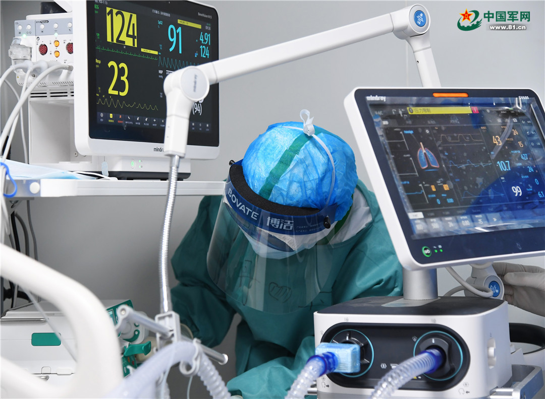近日,武汉火神山医院重症医学一科医护人员正在救治新冠肺炎患者。从2月10日开始收治重症患者以来,全科医护人员不畏风险全力救治,他们根据患者病情的变化,有预见性地快速调整救治方案,采取呼吸支持、抗病毒、维护脏器功能、加强营养等方法,使重症患者逐渐有了好转,提高了救治成功率。