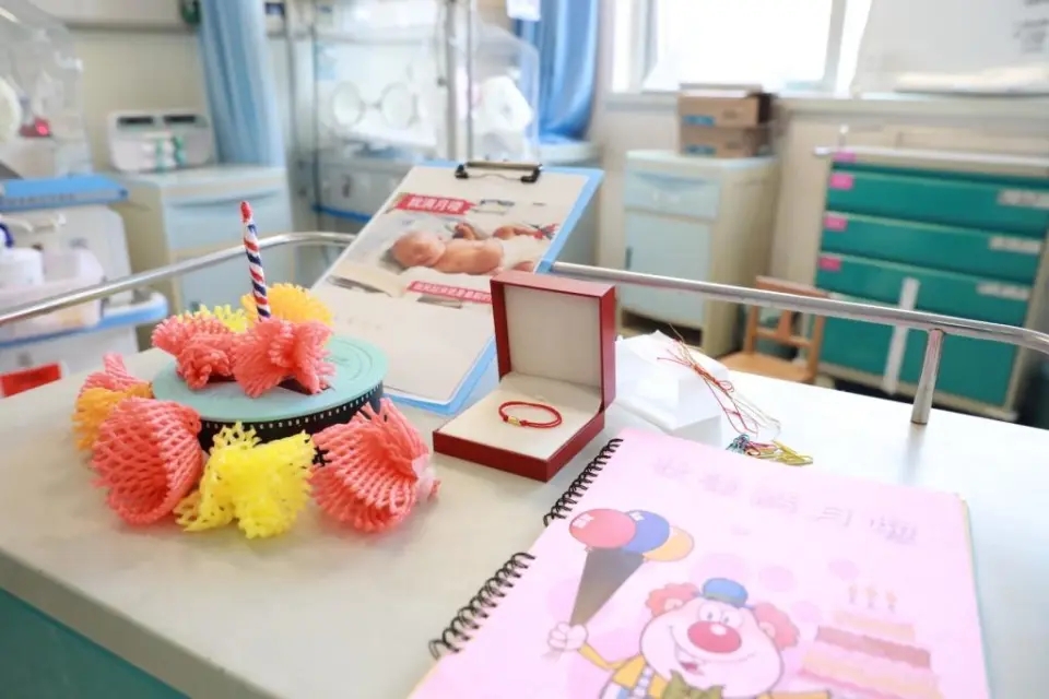 儿科主任聂国明说:“满月是一个很大的一个事儿,这个特殊时期,我们代替他的家人,父母,来行使对他的关爱,这样也是对他们家的父母战胜疾病,给他们一点点信心,让他们能够安心地治病。同时,对宝宝以后的成长,我相信也是一个很大的促进,或者很有纪念义的一个事情。”