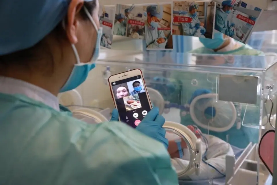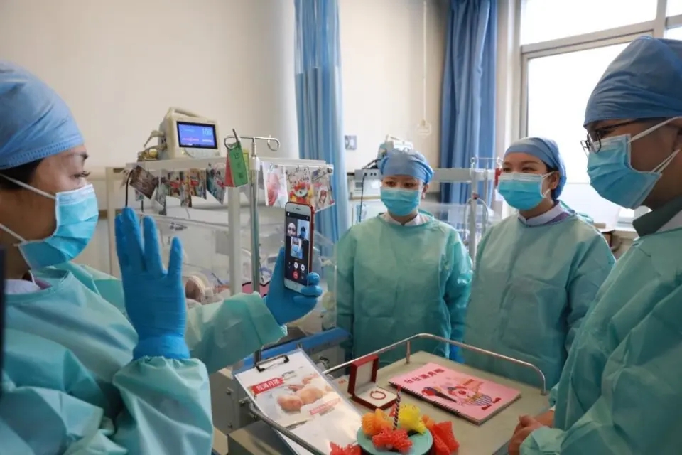 今天上午10点,壮壮的“临时爸妈们”来到病房,儿科护士长杨新凤拨通了壮壮父母的电话。尽管隔着手机屏幕,但看到孩子茁壮成长,看到医护人员精心准备的满月礼,壮壮的父母激动得掉下眼泪。