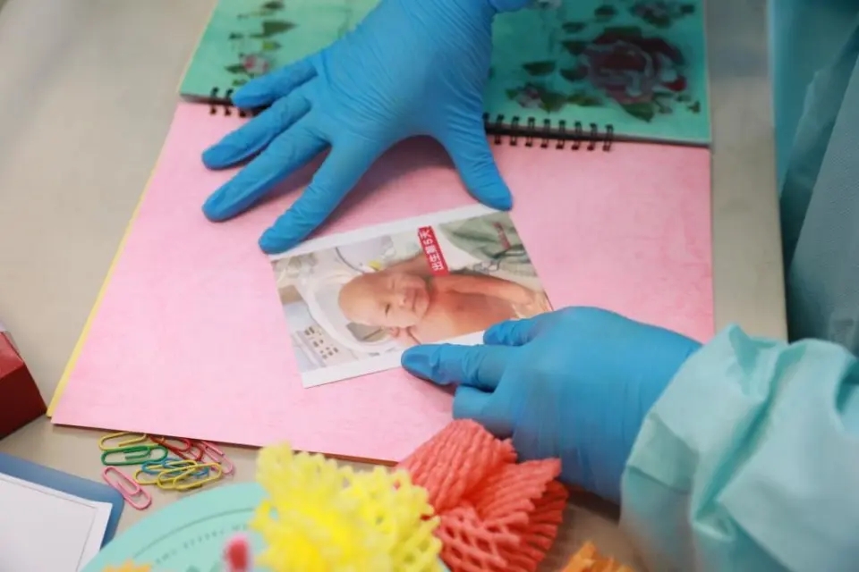 为了给壮壮举办满月礼,医院的“临时爸妈们”可是下了不少功夫。收集了宝宝影像,定制了满月礼物。医护人员还专门驱车十几公里,来到一家尚在营业的打印店,为壮壮制作了一本爱心满满的纪念册。