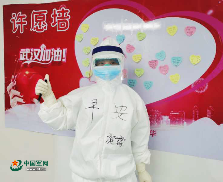 施露在防护服上写下“战士”二字。