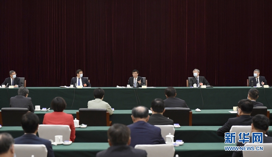 5月23日,中共中央政治局常委、全国政协主席汪洋看望出席全国政协十三届三次会议的民革、台盟、台联界委员并参加讨论。 新华社记者 殷博古 摄