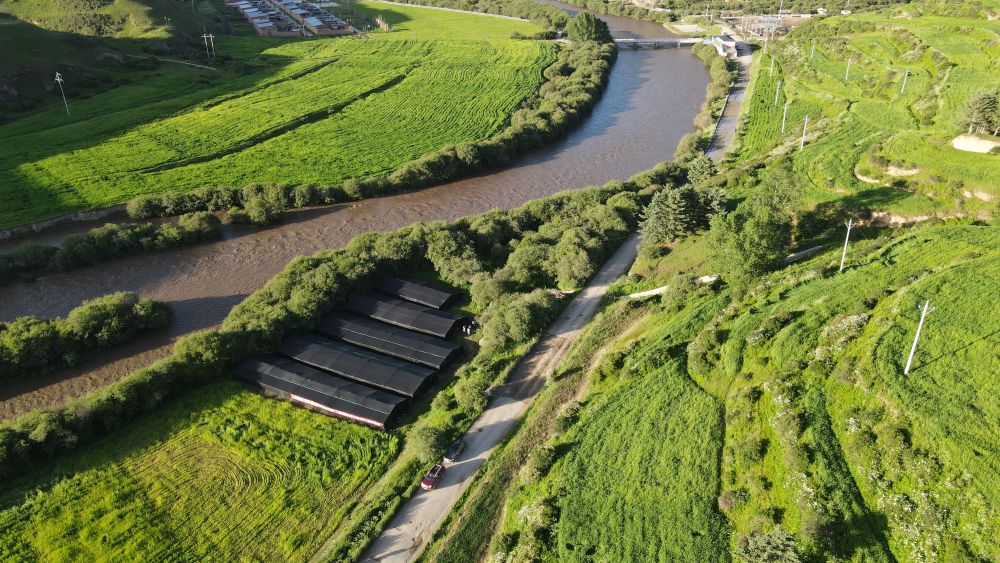 这是7月1日拍摄的甘肃省甘南藏族自治州碌曲县双岔镇毛日村羊肚菌种植基地(无人机照片)。