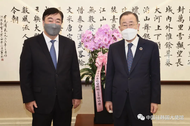 海外网9月23日电据中国驻韩国大使馆官方微信消息,9月23日,邢海明大使会见联合国前秘书长潘基文,潘基文向中国驻韩国大使馆赠送花篮,就中华人民共和国成立71周年和中秋佳节向中国人民致贺。