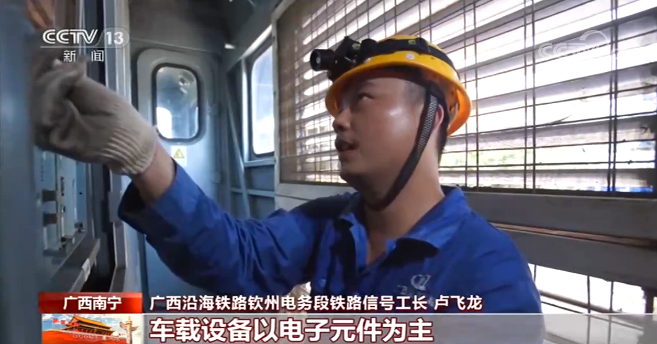 广西沿海铁路钦州电务段铁路信号工长 卢飞龙:车载设备以电子器件为主,长时间高温容易导致元件老化或死机,一旦出现问题就会影响机车安全运行,所以我们要定期检修。
