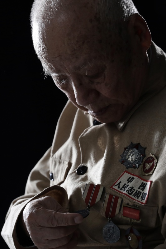 在北京市拍摄的志愿军老战士王仁山(10月13日摄)。新华社记者 琚振华 摄