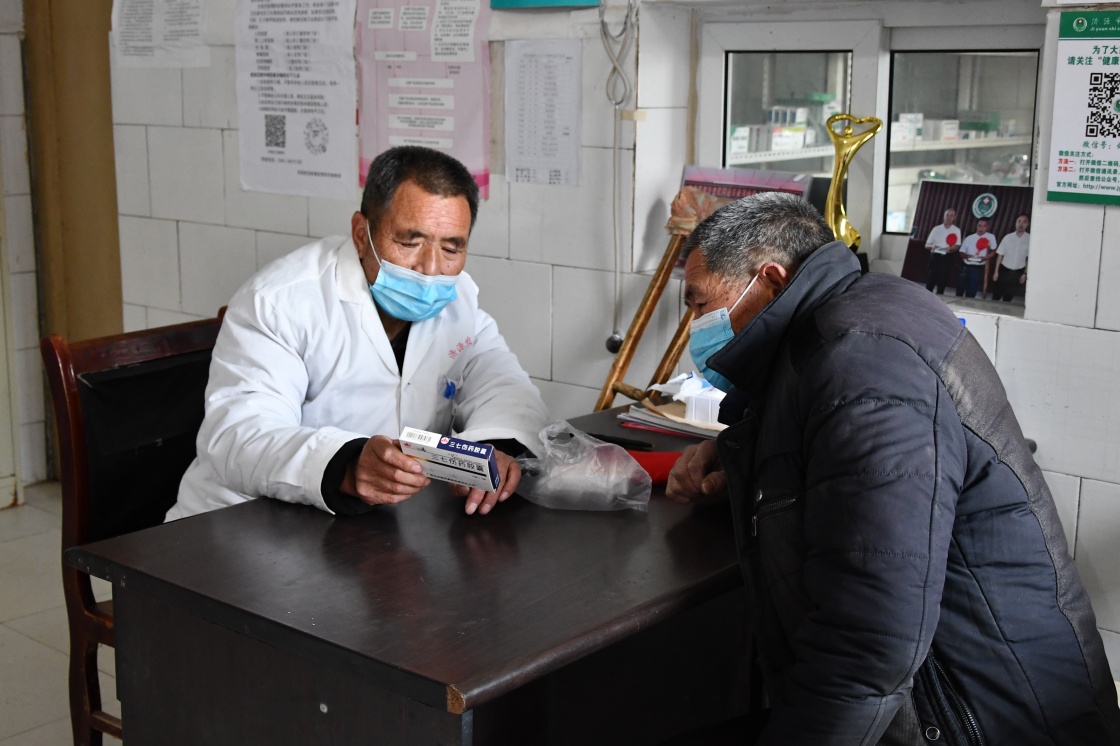 1月29日,在邵原镇称弯村,许奎民为患者详细讲解用药说明。新华社发