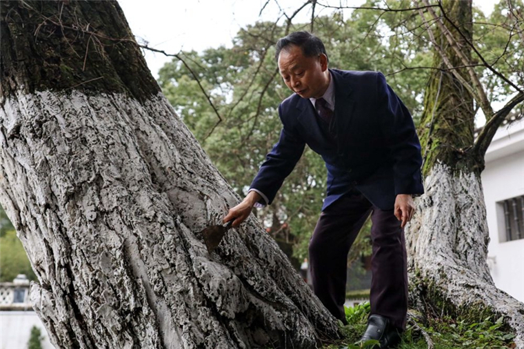 “这棵树是遵义会议纪念馆里唯一一个‘活着的文物’了。”67岁的“树医生”张本光说。
