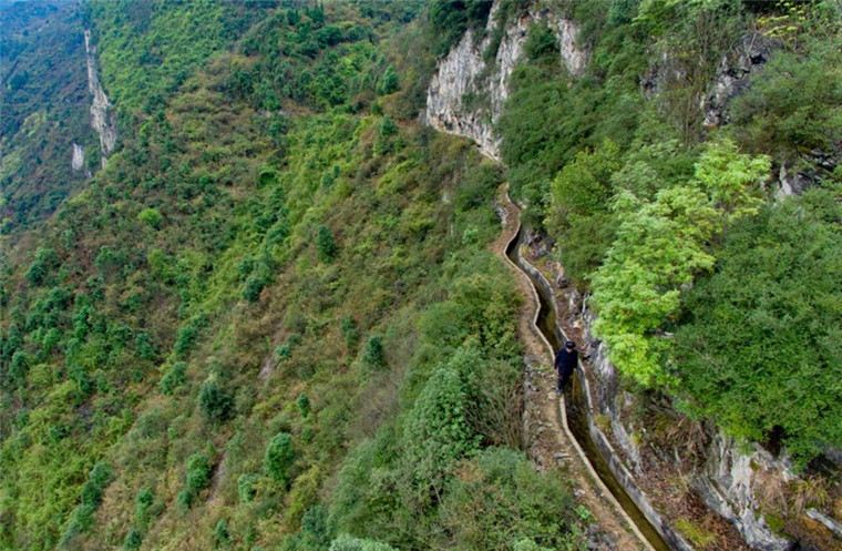 距离遵义会议会址100公里的播州区平正仡佬族乡团结村,共产党员黄大发自20世纪60年代起,带领200多名群众,历时30余年,靠着锄头、钢钎、铁锤和双手,硬生生在绝壁上凿出一条长9400米、地跨3个村的“生命渠”,结束了当地长期缺水的历史,被称为“大山里的愚公”。
