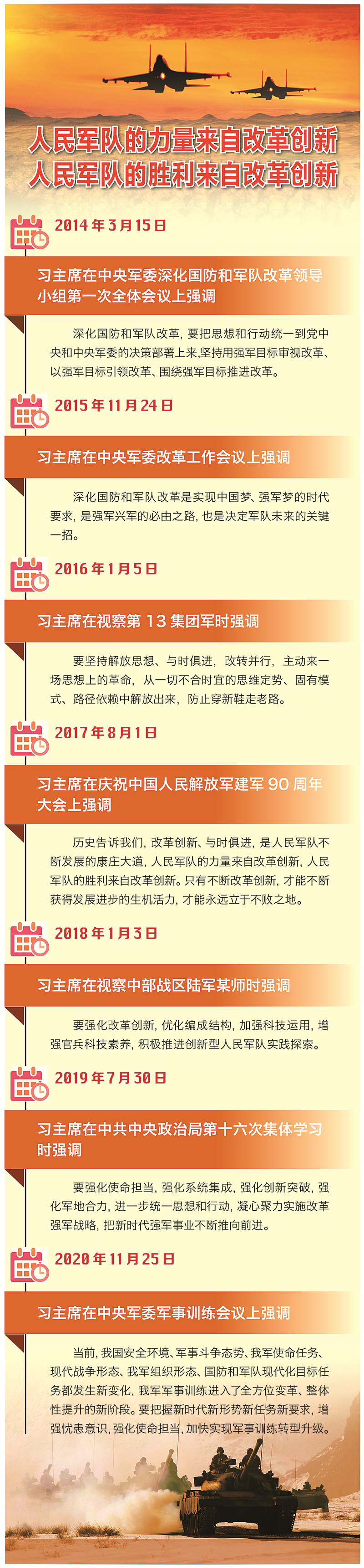 人民军队成长发展史,就是一部改革创新史。深化国防和军队改革,是实现中国梦强军梦的时代要求,也是强军兴军的必由之路。