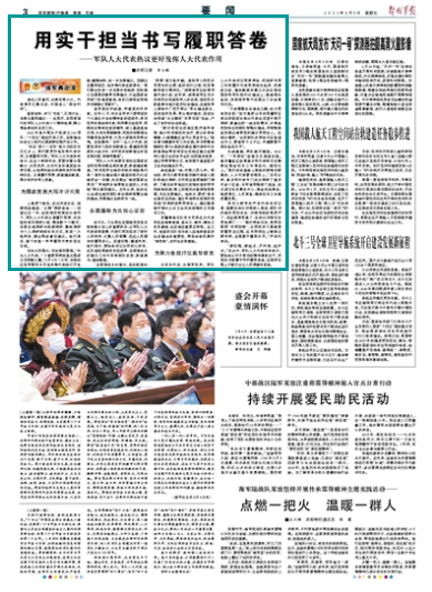 为官兵代言,为强军发声。军队人大代表牢记职责使命,把钻研本职工作和履行代表职责结合起来,把参政议政、建言献策的着力点放在推进国防和军队现代化建设上,围绕练兵备战、改革强军等内容提出了许多真知灼见。