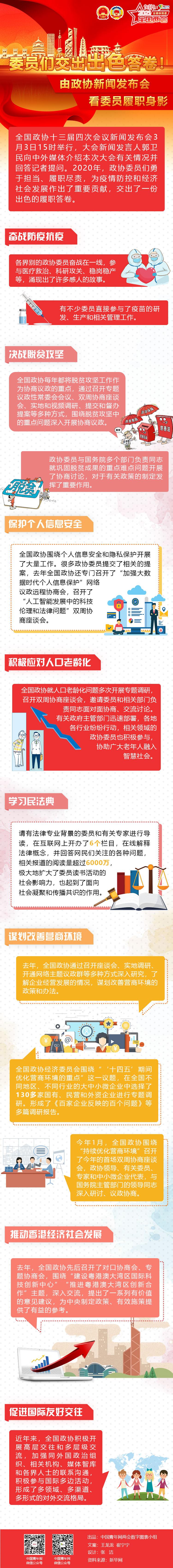 全国政协十三届四次会议新闻发布会3月3日15时举行,大会新闻发言人郭卫民向中外媒体介绍本次大会有关情况并回答记者提问。2020年,政协委员们勇于担当、履职尽责,为疫情防控和经济社会发展作出了重要贡献,交出了一份出色的履职答卷。