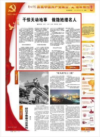 干惊天动地事 做隐姓埋名人