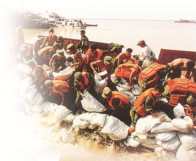 1998年,我国部分地区,特别是长江和嫩江、松花江流域发生了史所罕见的特大洪涝灾害。危难关头,30余万人民子弟兵与亿万群众一起,用血肉长城筑起冲不垮的防洪大坝。在党中央坚强领导下,全党全军全国人民万众一心、众志成城,不怕困难、顽强拼搏,坚韧不拔、敢于胜利,取得了抗洪抢险斗争的全面胜利。