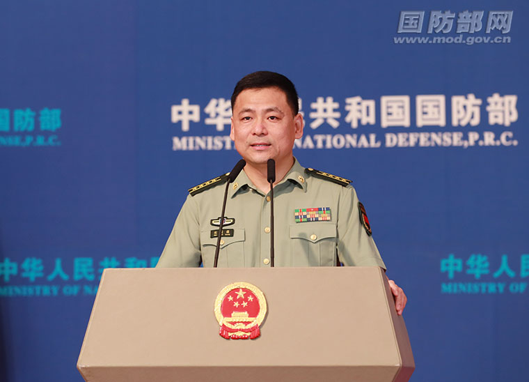 6月24日下午,国防部举行例行记者会,国防部新闻局副局长、国防部新闻发言人任国强大校发布消息。李晓伟 摄