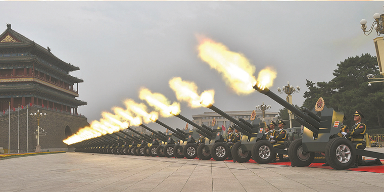 100响礼炮响彻云霄,如同历史的脚步,述说着中国共产党人100年来的伟大征程—