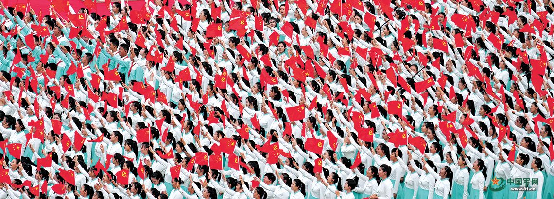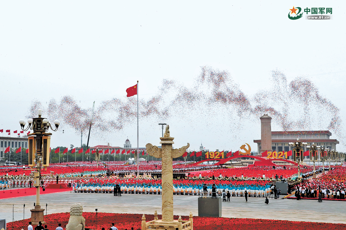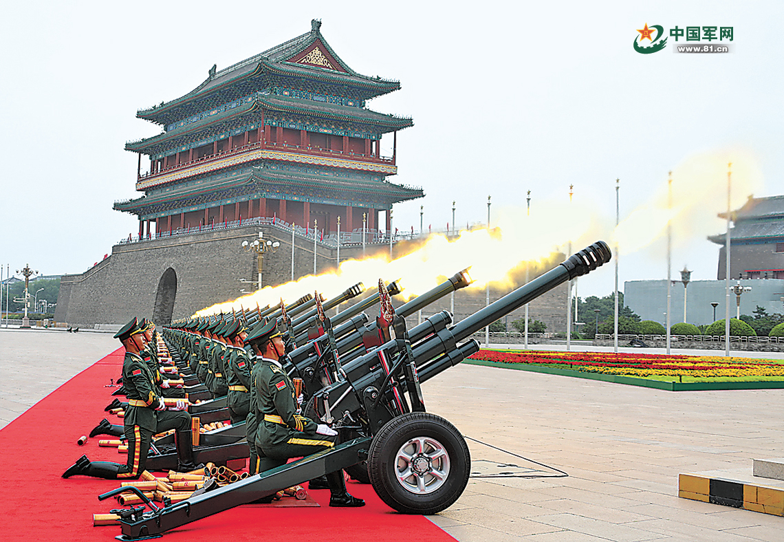 大会开始后,鸣放100响礼炮致敬党的百年光辉历程。