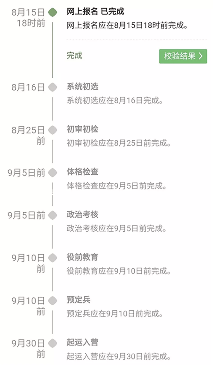 如果想当兵,还需要在“全国征兵网”上进行报名应征,尔后经过体格检查、政治考核、役前训练等程序,由县级兵役机关审批通过后,才能正式当兵。
