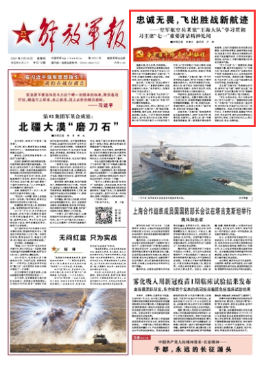 “学习习主席‘七一’重要讲话,我越学越有力量,越学信念越坚定!”从“王海大队”成长起来、刚被评为“全国优秀共产党员”的旅参谋长王立,出色完成庆祝大会的飞行任务。他告诉记者:“驾驶战机飞过天安门上空,以奋飞姿态献礼党的百年华诞,我倍感自豪。”