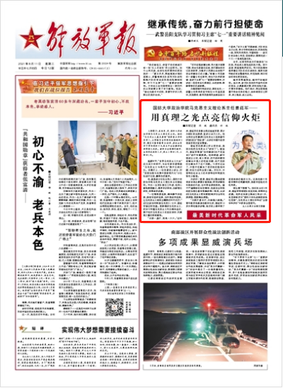 “点燃一盏灯,照亮一大片。”近年来,姜延军的身影出现在座座军营,累计为部队官兵授课、宣讲20余万人次。他主持的全军慕课《马克思主义经典著作研读》成为“网红课”,主讲的专题内容受到诸多网友留言赞誉。