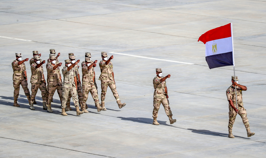 8月22日,“国际军事比赛-2021”中国库尔勒赛区比赛在新疆库尔勒开幕,埃及参赛队走过主席台。 新华社发 罗兴仓 摄