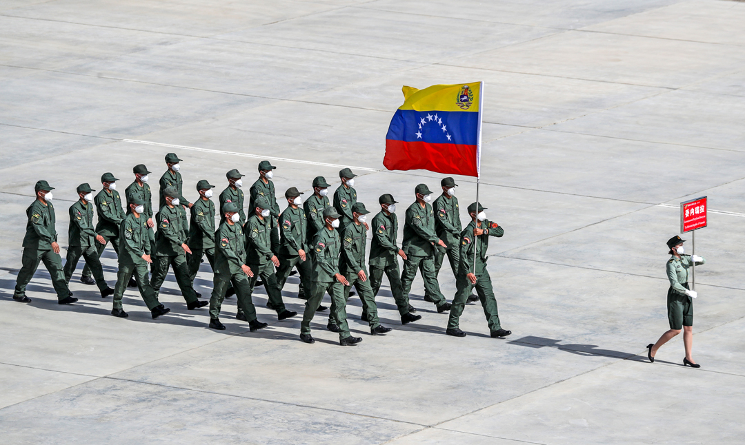8月22日,“国际军事比赛-2021”中国库尔勒赛区比赛在新疆库尔勒开幕,委内瑞拉参赛队走过主席台。 新华社发 罗兴仓 摄