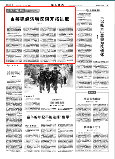 1979年,时任广东省委书记的吴南生同志到汕头传达党的十一届三中全会精神。看到当地城乡经济发展远远落后于比邻的香港时,他感到十分痛心,下定了打破条条框框改变这一现状的决心。在省委常委会议上,他大胆提出在沿海划出一块地方兴办出口加工区的设想。顶着巨大的压力和阻力主动请缨,他说,如果省委同意,我去办。要杀头就杀我!在广东省委支持下,吴南生同志组织参与了经济特区的规划筹建,兼任广东省经济特区管理委员会主任、深圳市委第一书记,成为经济特区建设的一个重要开拓者。看似寻常最奇崛,成如容易却艰辛。吴南生的经历,所展现的是共产党人无私无畏、奋发作为的开拓进取精神。