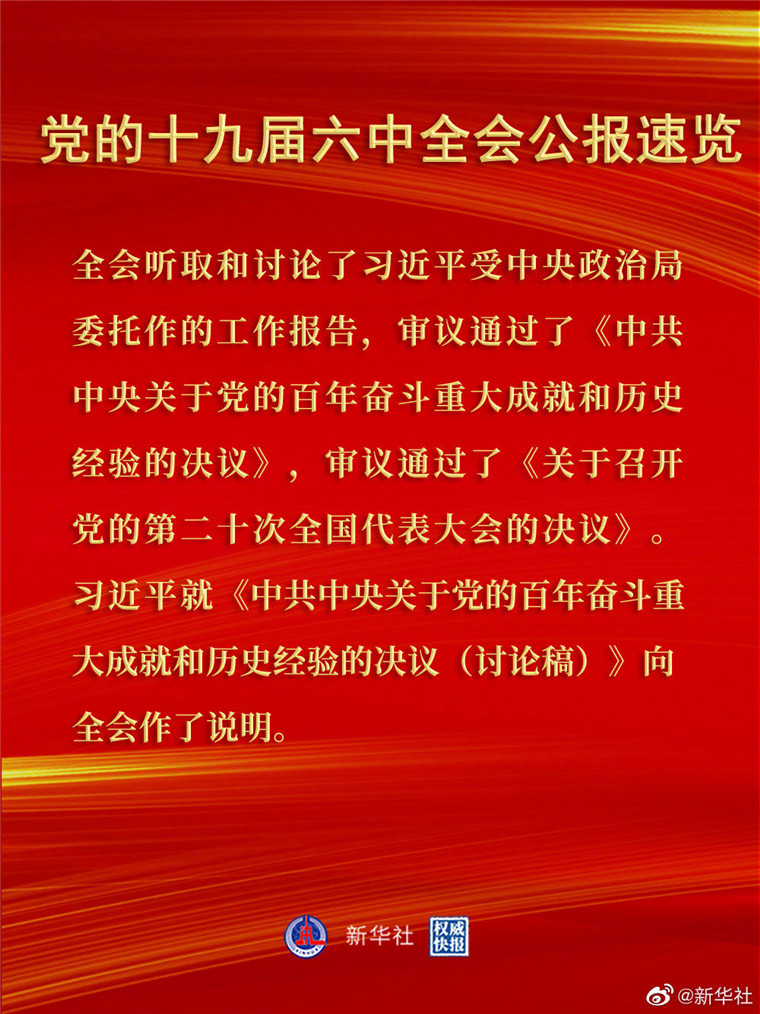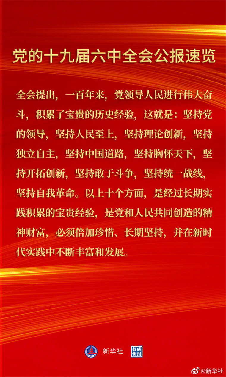 党的十九届六中全会公报速览