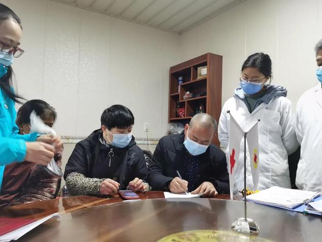 屠楼宇父母在绍兴市红十字会工作人员的见证下签下遗体捐献确认单