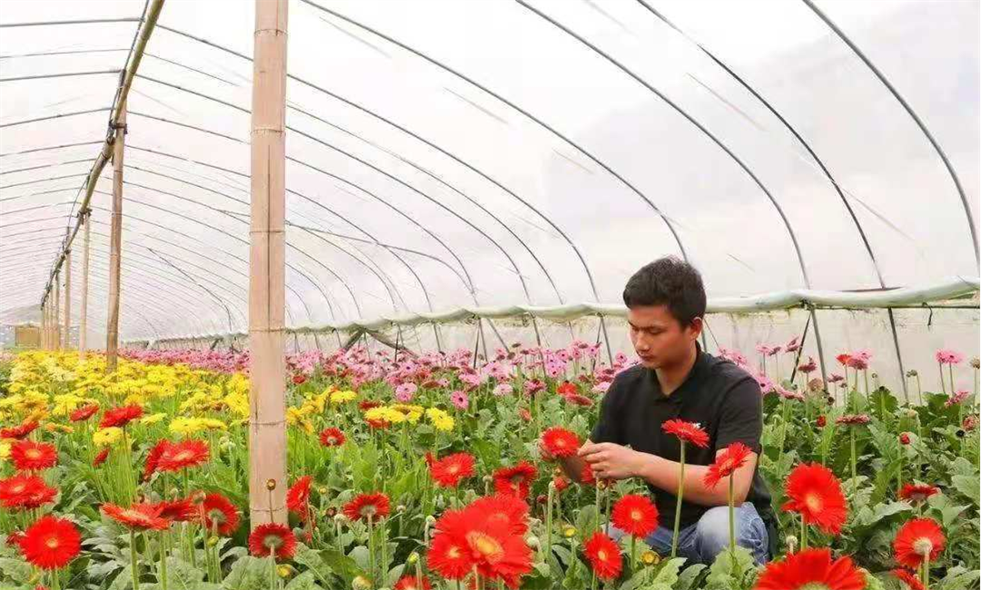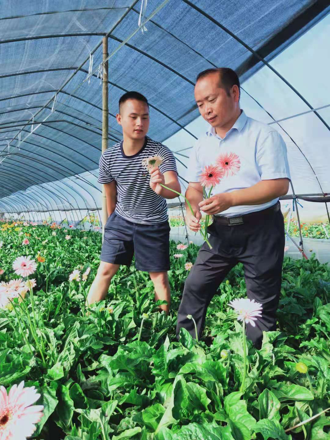 创业期间,竞争激烈,但秉持着军人迎难而上的作风,蒋传旺积极努力学习技术,通过引导贫困户入股合作社的方式帮助贫困农户就业。目前,该合作社已自建和扶贫带动基地180多亩,其中以非洲菊为主导的鲜花设施栽培种植基地30亩,实现了集生产、加工、销售为一体的农业产业链,有专业技术人员3人,常年务工人员40人,帮助全村60户153人实现脱贫增收。与此同时,公司也一直热衷于公益活动,利用自媒体资源卖出公益花,先后为村里的20余户贫困学生送去学习用品和生活用品,为脱贫攻坚做出了一份贡献。
