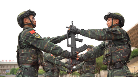 榄核镇星海双拥乐队在国防科普展揭幕仪式上演奏《强军战歌》