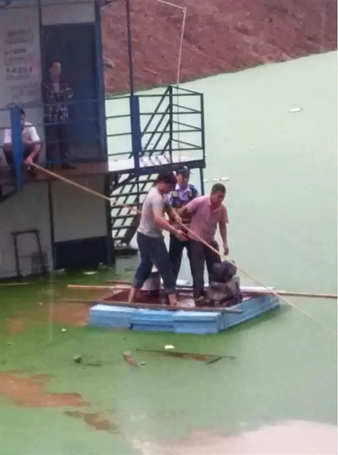 此刻,板房距岸边约15米远,水面仍不断上涨,如何救人?大家急得直跺脚。“都莫慌,救人第一,你们抓紧找材料!”老朱利用在部队学习的知识,安排工地人员找来木板、整块泡沫材料,他再利用铁丝捆扎,很快就制成了一个简易筏。