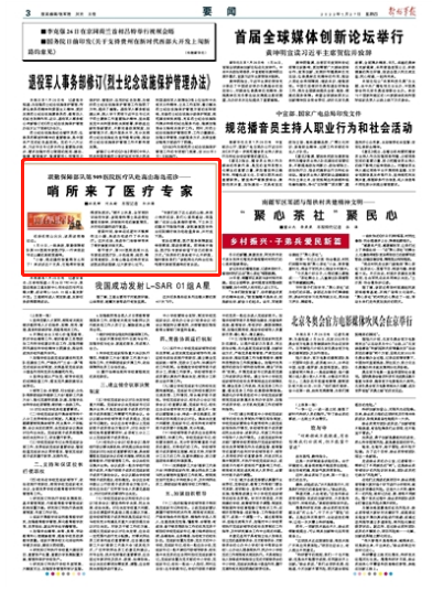 春节前夕,第909医院选派35名专家组成医疗队,分赴闽南、闽西、粤东等地部队,为高山海岛的哨所官兵送医送药送温暖,让大家安心过节。